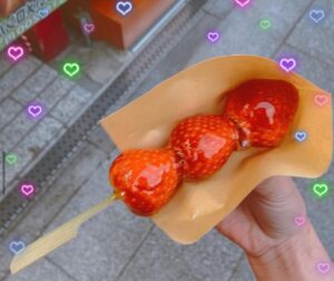 昨日、地元のお祭りがあって久しぶりにイチゴ飴を食べました?