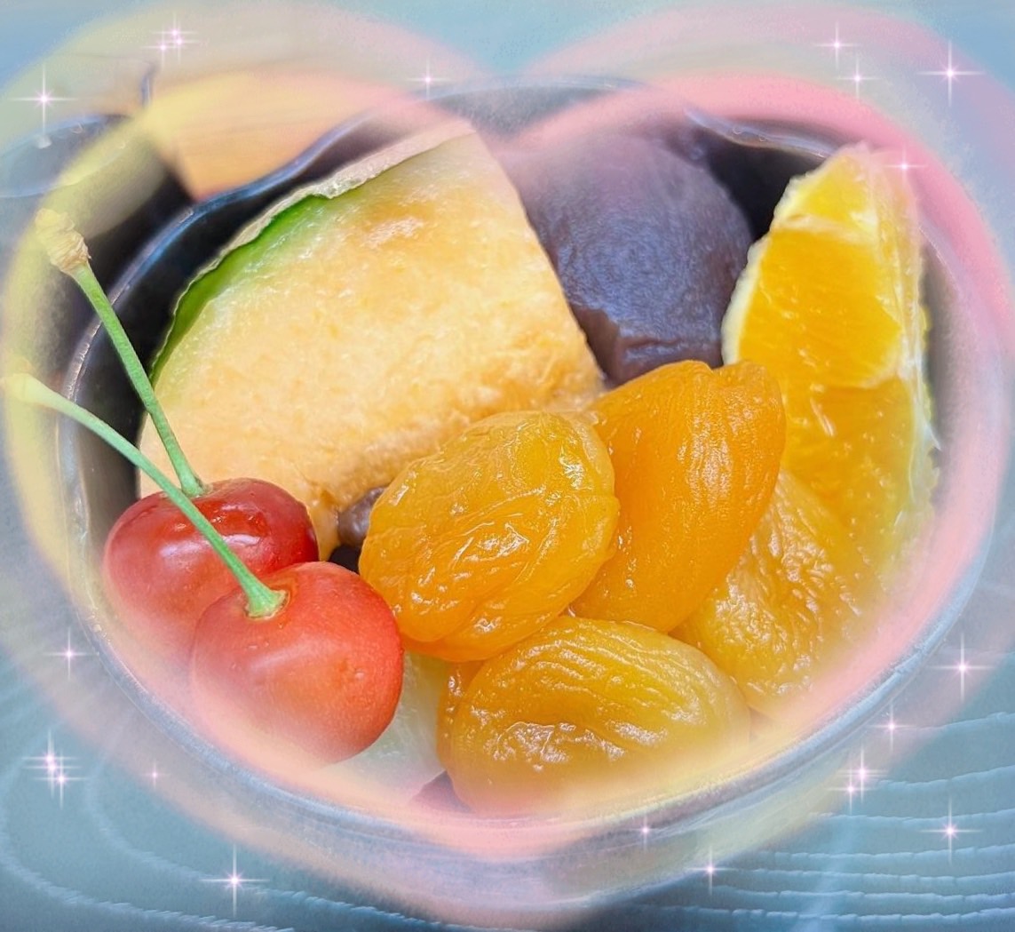 私はきのう、お母さんとおばあちゃんとお出かけして餡蜜食べてきた〜?