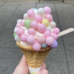 最近とってもあっついからこの前おかしがのったアイスたべました???