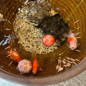 いえの近くをあるいていたらかわいい金魚がいたよ?
