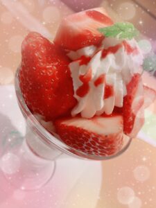 ご褒美で苺パフェ食べにいってきたの✨