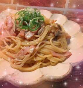 写真はお昼に食べた、きのこパスタ!