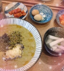 初めて食べた冷麺?みたいなやつなんだけど、とっても美味しかったぁ☺️
