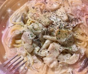 たまたまみつけたお店にあったキノコクリームパスタ!