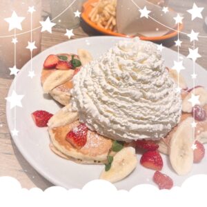 うれしくなってパンケーキをお友達と一緒に食べてきました?