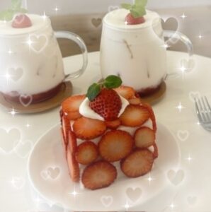 写真はこの前ともだちと行ったカフェのいちごケーキ?