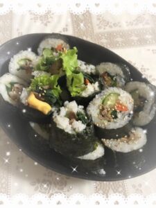 写真はこの前いった韓国料理やさんで食べたキンパ?
