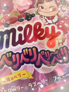 写真はコンビニで見つけたベリーのミルキー?