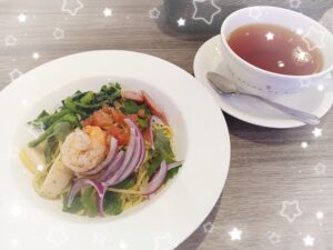 来る前におしゃれなパスタランチ行ってきました?紅茶もすごくおいしかった☕️