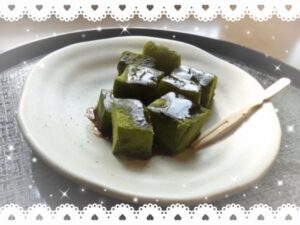 写真はこの前行った和風カフェで食べた抹茶わらびもちです⭐️