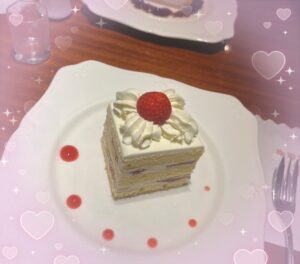 写真はこの前友達と食べに行っておいしかったケーキだよ〜?いちご大好きなんだ?