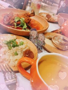 写真はこの前アニメコラボカフェ行った時の!おいしかったよ〜!