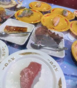 回転寿司ってお腹いっぱいになっても別腹で甘いもの食べれちゃってついついたべすぎちゃう(笑)
