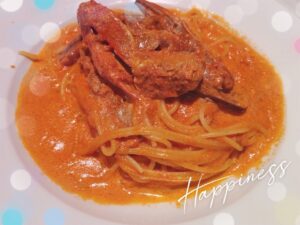 ワタリガニのトマトクリームパスタがめっちゃ美味しかったの?