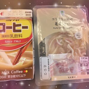 今日のご飯はこれ!!相変わらず偏食だからコーヒー牛乳とミミガー( ᎔˘꒳˘᎔)✨☕️
