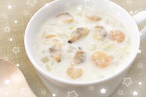 写真は学校の近くのカフェのクラムチャウダー?