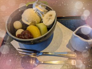 写真はこの前食べたあんみつ!