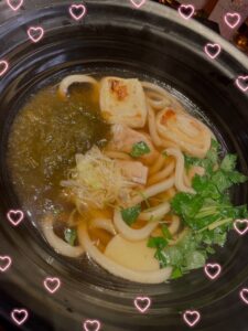 お正月の話してて思い出したけど、この間うどん食べ行ったときにお正月もう終わったのにお雑煮のおうどんたべた笑