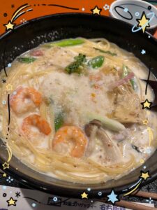 20時までいますよー!遊び来て下さい? 五右衛門てパスタ屋さんのこの冬限定のスープパスタがすごく美味しくてハマってる✨笑