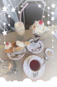 友達と韓国に行った時のカフェの写真!パフェもカフェの内装も可愛くてずーっと楽しかったな?