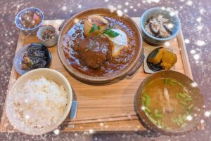 今日のお昼に煮込みハンバーグ食べたよ?