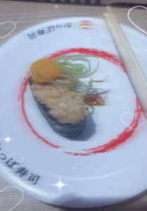 写真は私が1番好きな納豆卵黄軍艦!笑笑