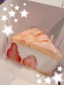 きゅる池袋到着です? 2025-08-03 14:32 きゅる池袋到着です? 少し前に差し入れに頂いたケーキが美味しすぎて自分でも買いに行っちゃった!??? シュー生地のショートケーキでとっても気に入ってしまったよ? 8月最初です❕ きゅるに会いに来てねー!?⬛?