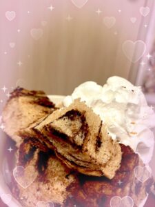 このまえパン屋さんで買ったパンにホイップクリーム乗せてたべたんだ!?