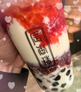 タピオカ飲みながらまってるね?