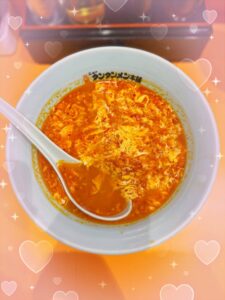 真っ赤なスープにふわふわ卵がたっぷり入ってて、見るからに辛そうでしょ??️