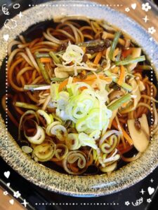 真ん中には山菜とシャキシャキのネギがいっぱい乗ってて、彩りもとっても綺麗でしょ??✨