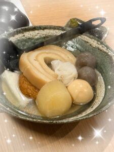 いお✨ 2025-12-24 12:07 いお✨ とっても寒くなってきたね?? おでんが美味しい季節って感じ? みんなはおでん何が好き? いおははんぺんが好きなんだけど ここの食べたらお麩にハマった??