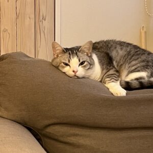 写真は前回と同じ猫カフェのとこの別の猫だよー?定番のあそび場所❣️