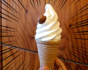 今日はソフトクリームを食べながらきました笑